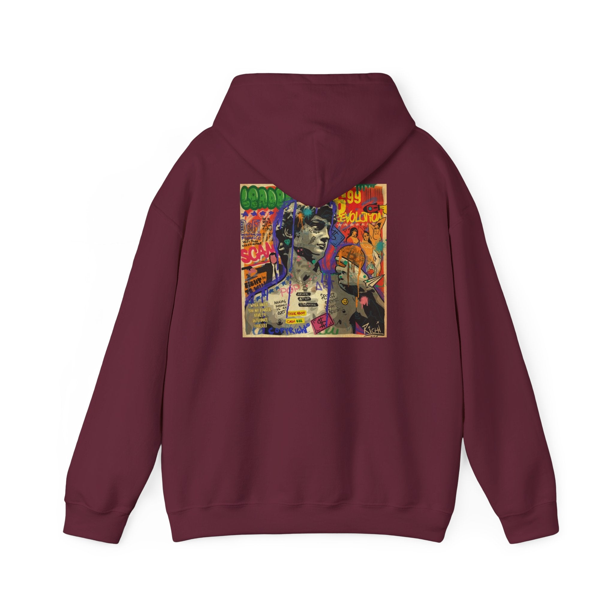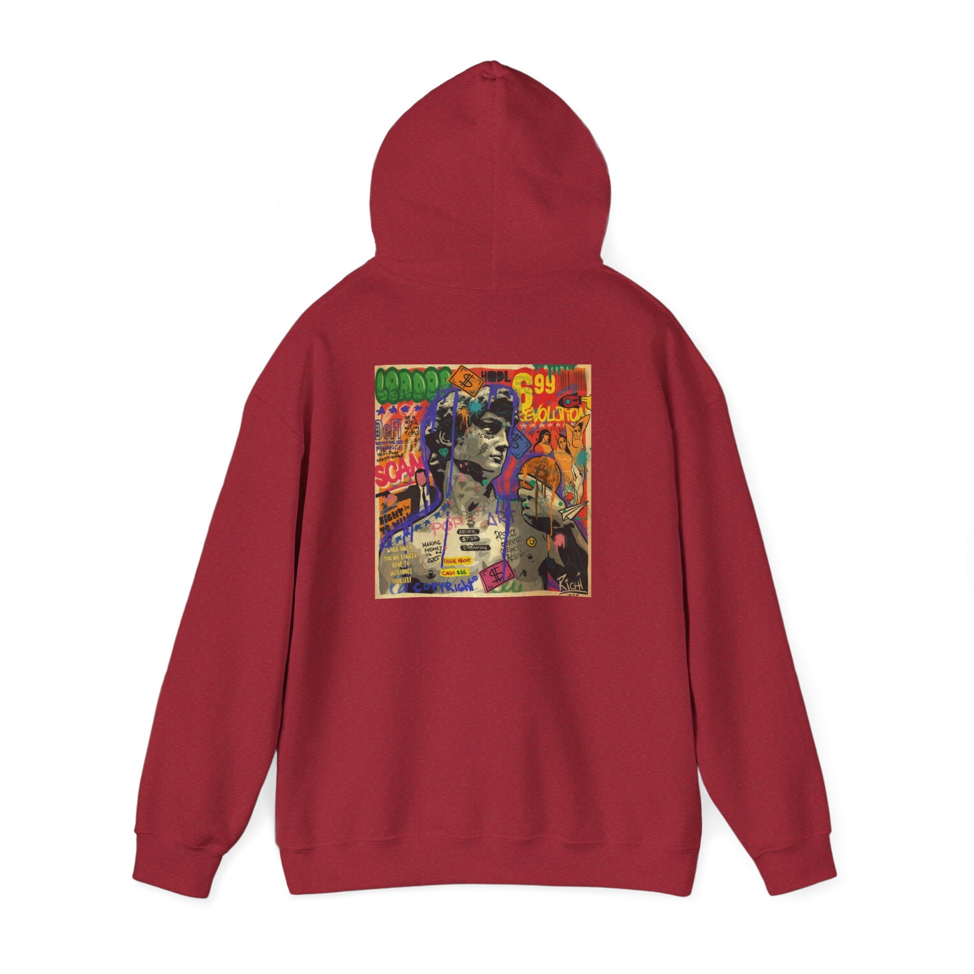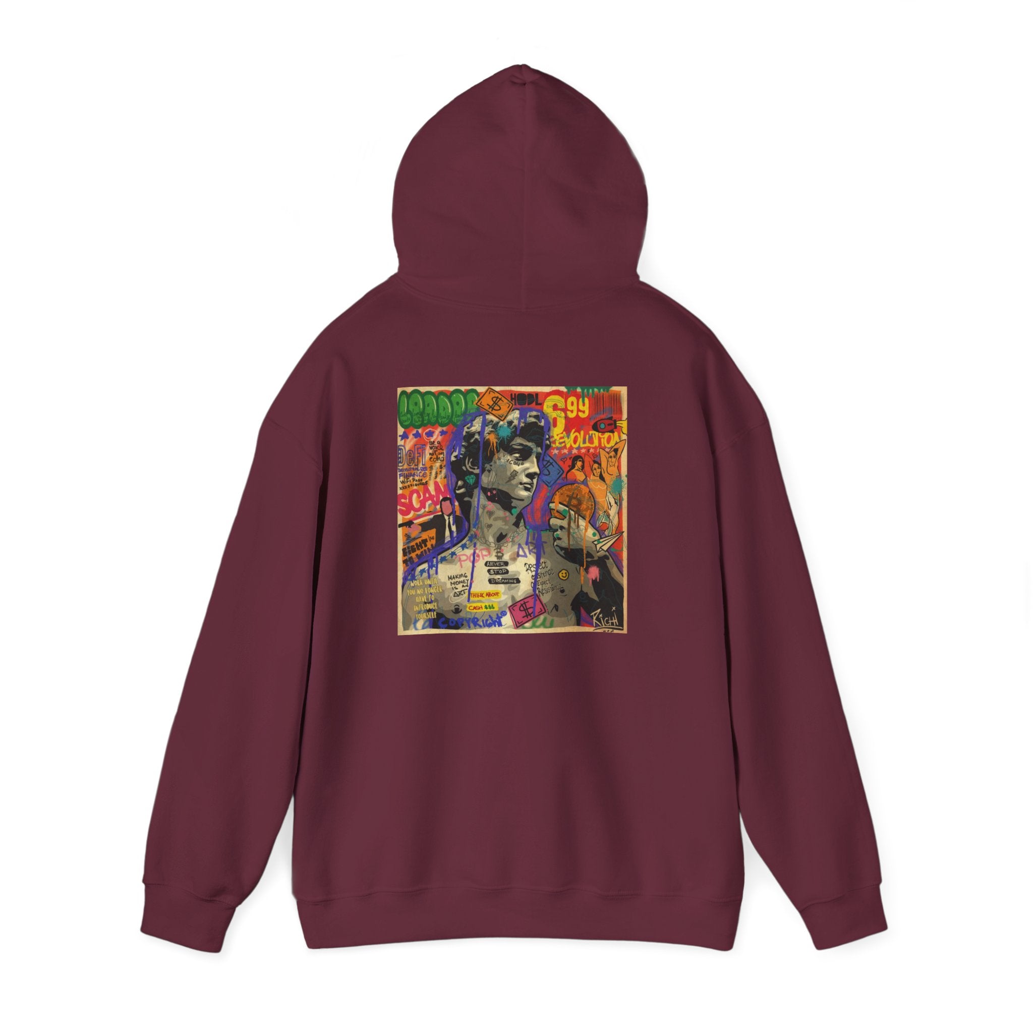 This unisex heavy blend hooded sweatshirt is relaxation itself. Made with a thick blend of cotton and polyester, it feels plush, soft and warm, a perfect choice for any cold day. In the front, the spacious kangaroo pocket adds daily practicality while the hood's drawstring is the same color as the base sweater for extra style points.