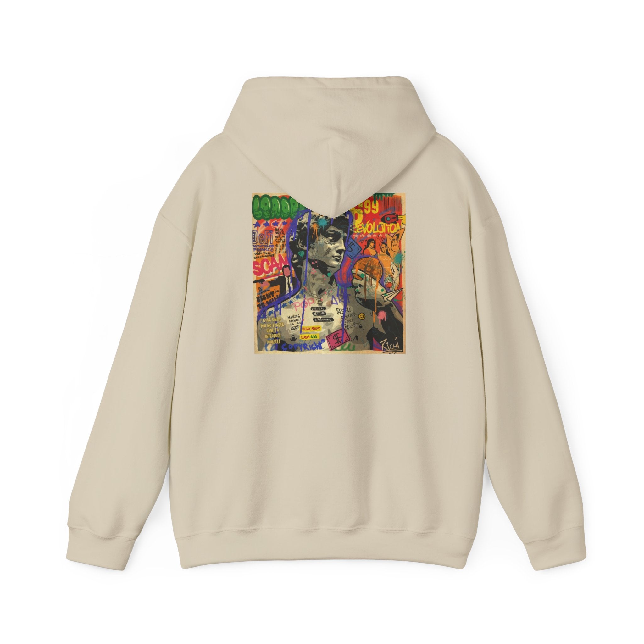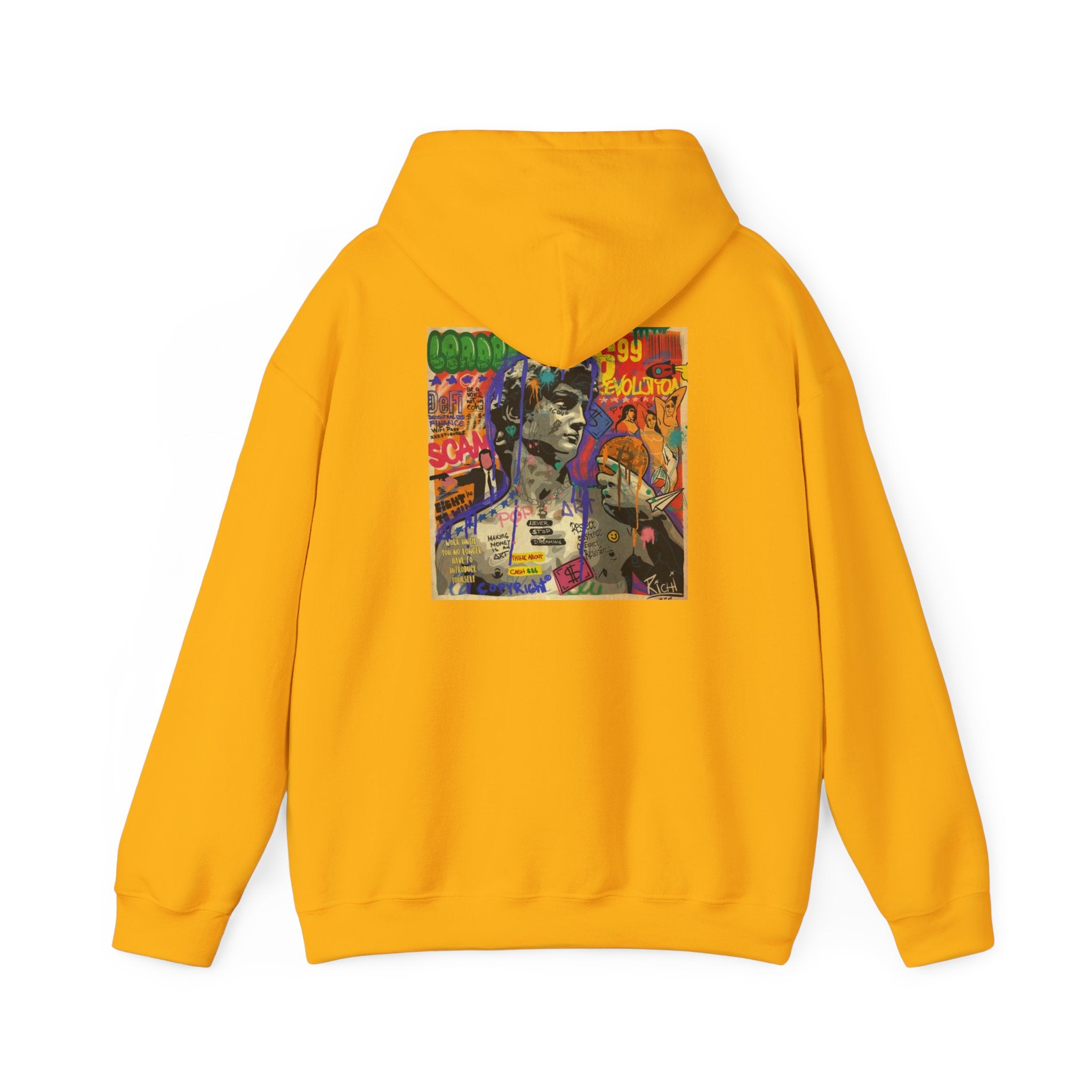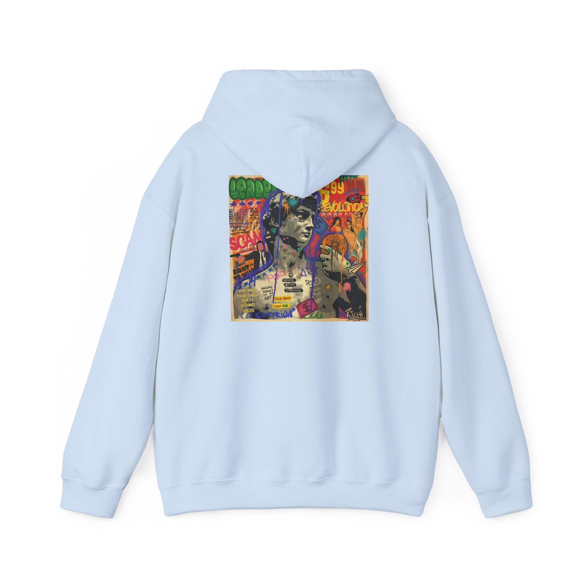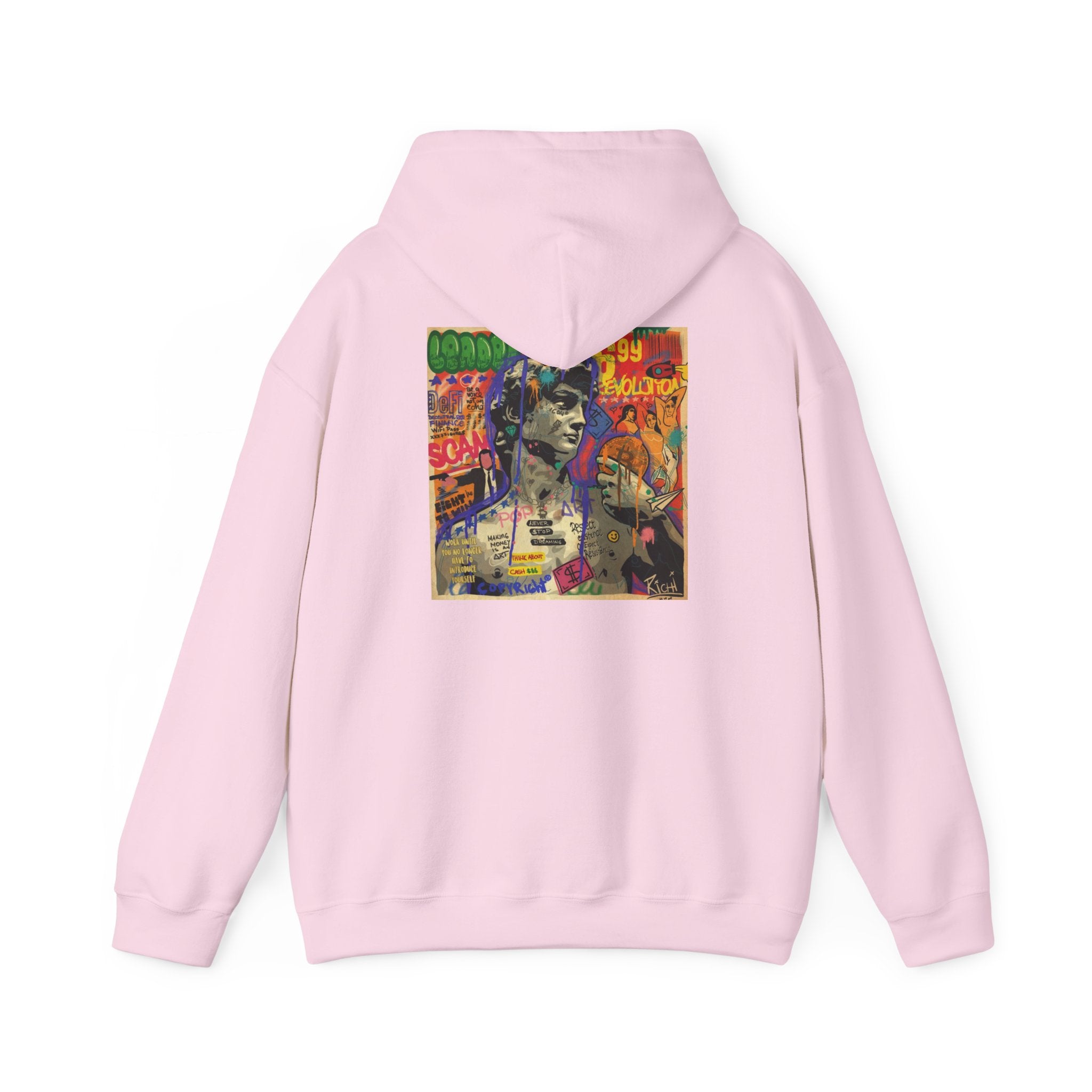 This unisex heavy blend hooded sweatshirt is relaxation itself. Made with a thick blend of cotton and polyester, it feels plush, soft and warm, a perfect choice for any cold day. In the front, the spacious kangaroo pocket adds daily practicality while the hood's drawstring is the same color as the base sweater for extra style points.