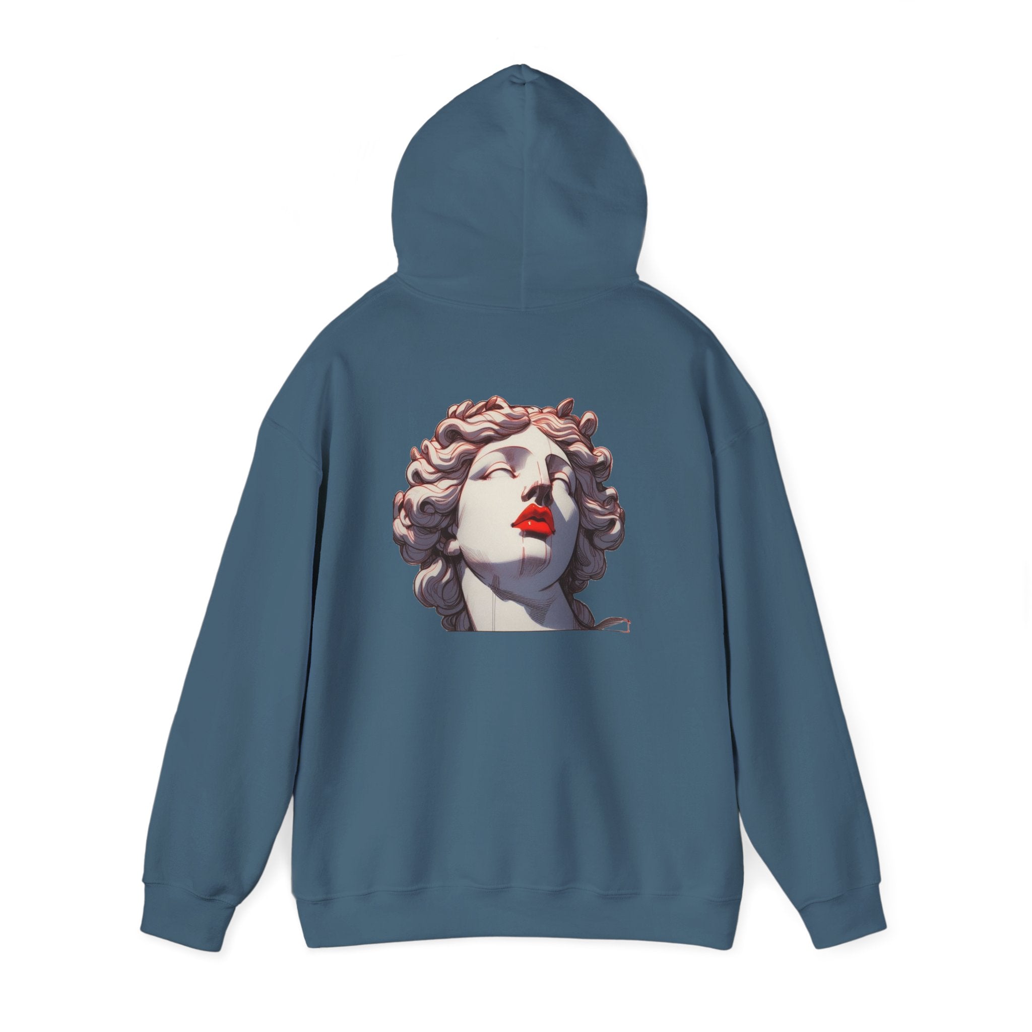 This unisex heavy blend hooded sweatshirt is relaxation itself. Made with a thick blend of cotton and polyester, it feels plush, soft and warm, a perfect choice for any cold day. In the front, the spacious kangaroo pocket adds daily practicality while the hood's drawstring is the same color as the base sweater for extra style points.